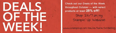 Check out DEALS OF THE WEEK this week! Please email me on or before Sunday, Oct. 18th to take advantage of these deals! OR you can order on my Stampin’ Up website ANYTIME! Just click HERE.