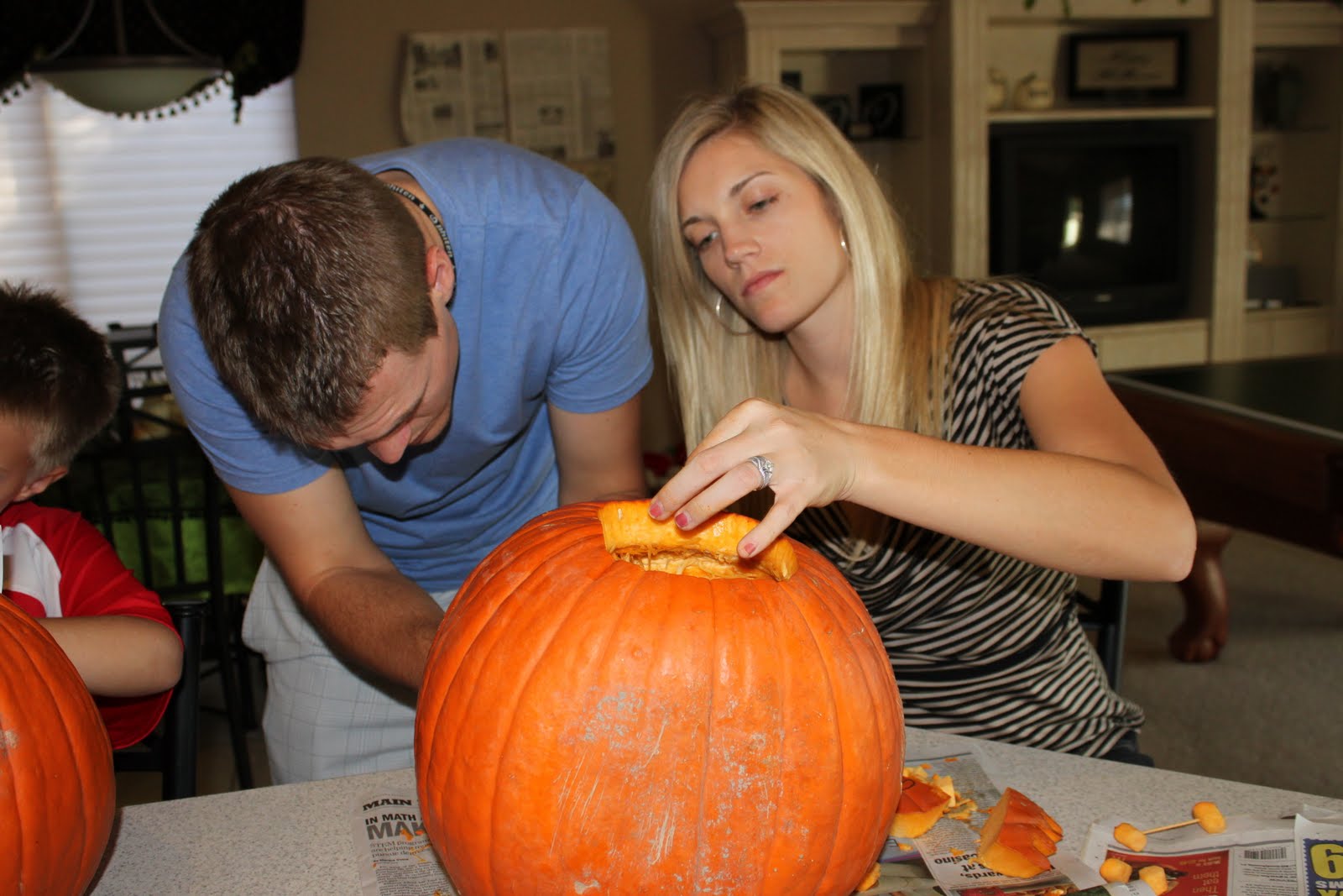 Here’s some photos of pumpkin carving day yesterday! Happy Halloween everyone! Brittany, Blake and Brady get some nerf gun action in, too. Brady made an “angry bird” pumpkin, and Brittany and Blake made a Pac Man pumpkin!